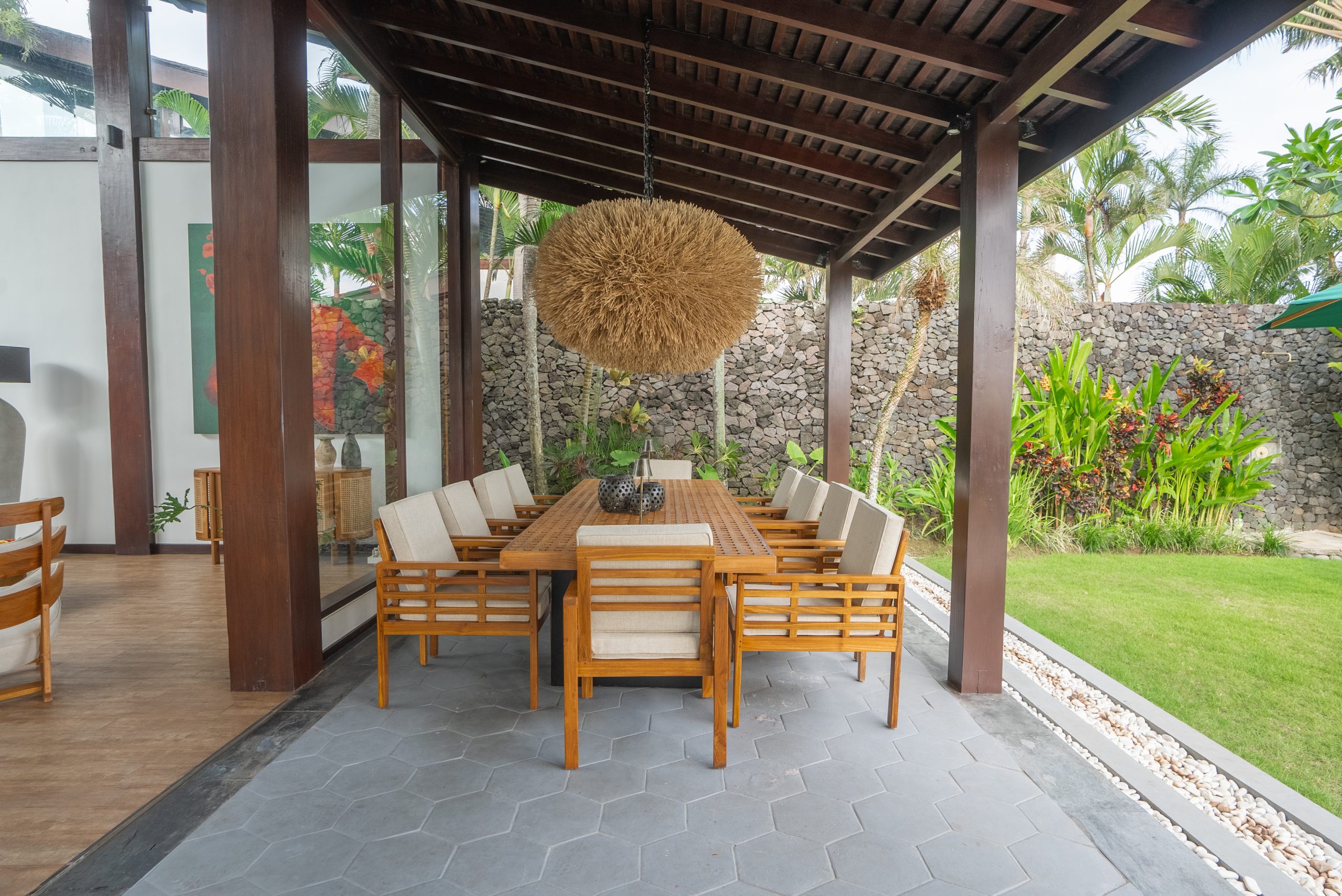 Step outside to your 15-meter private saltwater pool, the perfect centerpiece for days spent basking in the sun or watching the sky burn orange at sunset. Beyond the pool, a lush lawn rolls gently toward your private beach access, offering panoramic views of every wave in Tabanan’s legendary surf breaks.