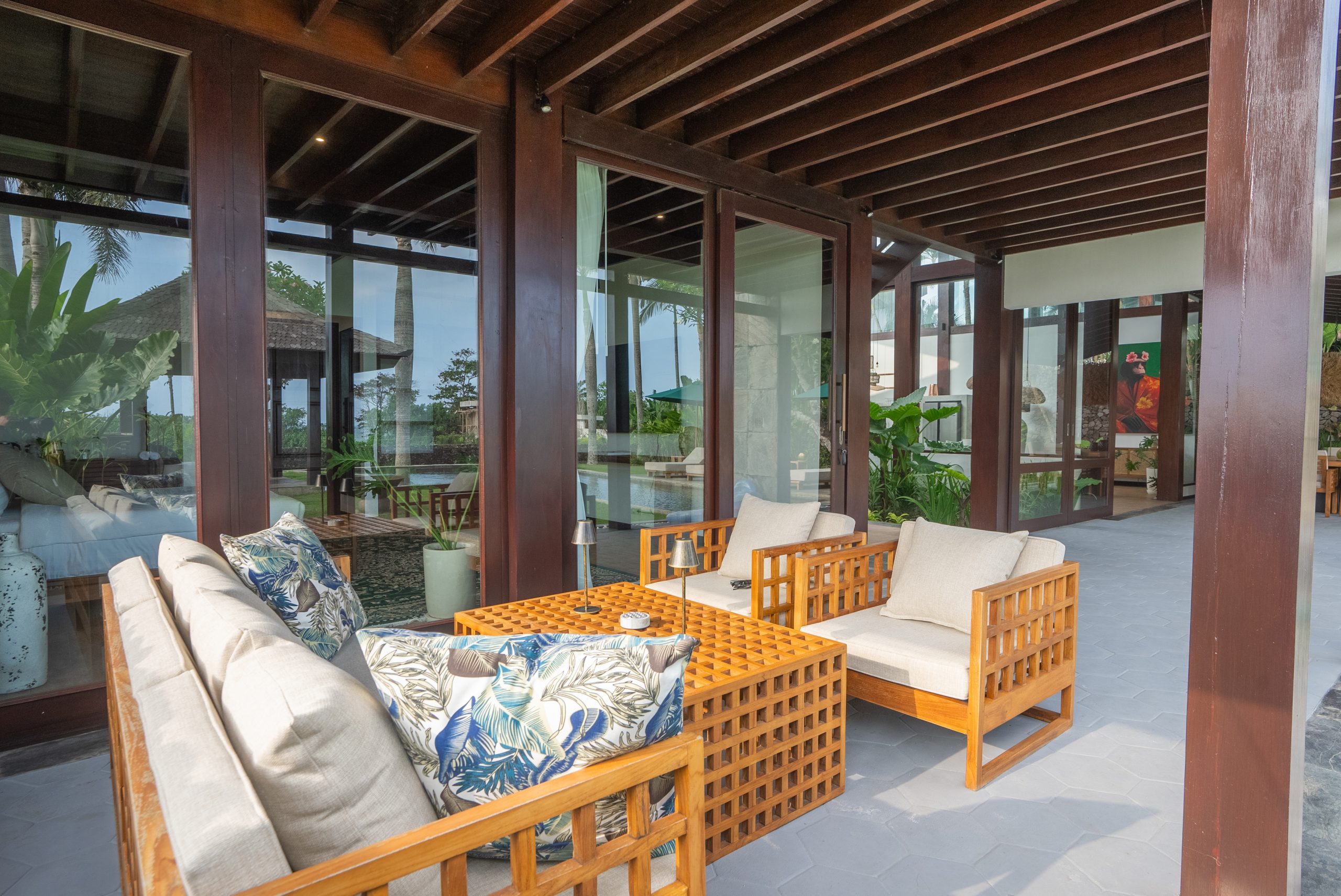 Designed and crafted by a renowned Australian architect, these villas exude unparalleled sophistication and impeccable craftsmanship. The highest quality materials have been meticulously chosen, including seventeen 30 x 30 cm wooden pillars that soar to over 8 meters in the highest point.